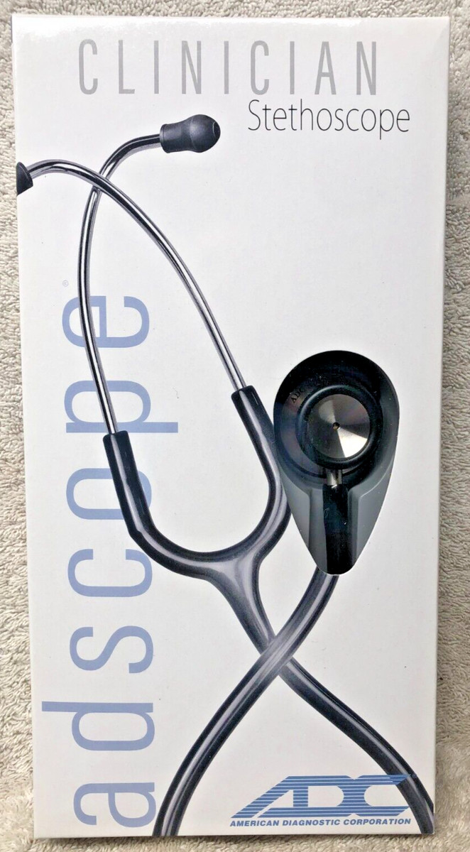 ADC Adscope Clinician Stethoscope. The specifications and features of this stethoscope include: Chestpiece: It features a combination dual-head chestpiece, typically made of surgical stainless steel. Some models, such as the Adscope 608, are convertible, allowing for both adult and pediatric diaphragm configurations. Acoustics: The stethoscope uses Adjustable Frequency Design (AFD) technology, which allows the user to hear low-frequency (bell-type) sounds with light pressure and high-frequency (diaphragm-type) sounds with firm pressure on the chestpiece. Comfort and Durability: The headset is designed for comfort and durability, with a reinforcing yoke and soft silicone eartips for a proper acoustic seal. The chestpiece has non-chill rims for patient comfort. Warranty: The stethoscope comes with a lifetime warranty that covers parts and free consumables like diaphragms and eartips upon registration.