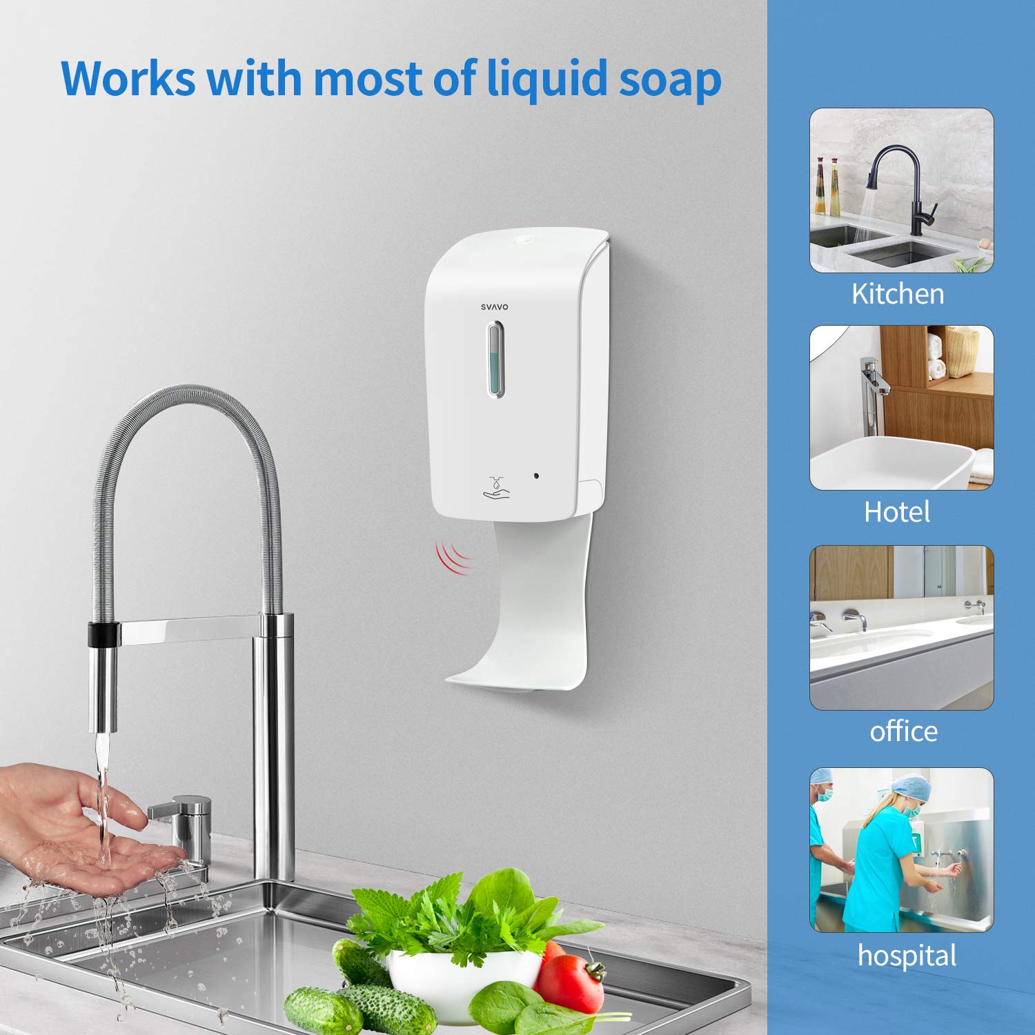 Multi-Liquid Dispensing: Compatible with liquid soap, hand sanitizer, foam soap, spray sanitizer, and light-consistency shampoos.