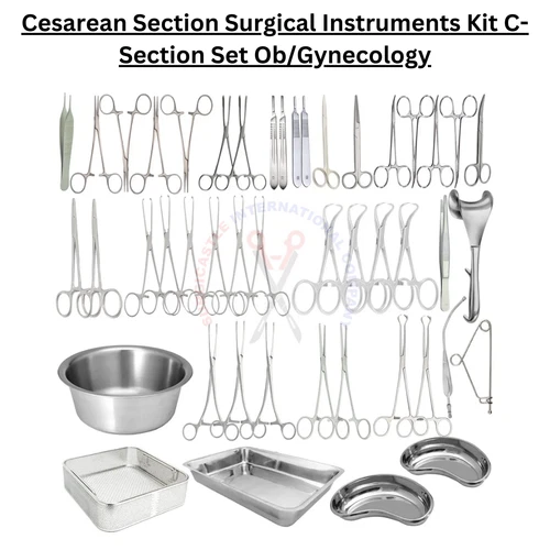 The Cesarean Section (C-Section) Instrument Kit is a comprehensive surgical set containing all essential instruments required to safely deliver a baby through abdominal and uterine incision. Designed for use in obstetric operating theaters, this kit supports every stage of a C-section procedure—from incision and tissue dissection to hemostasis, retraction, suturing, and neonatal care.
