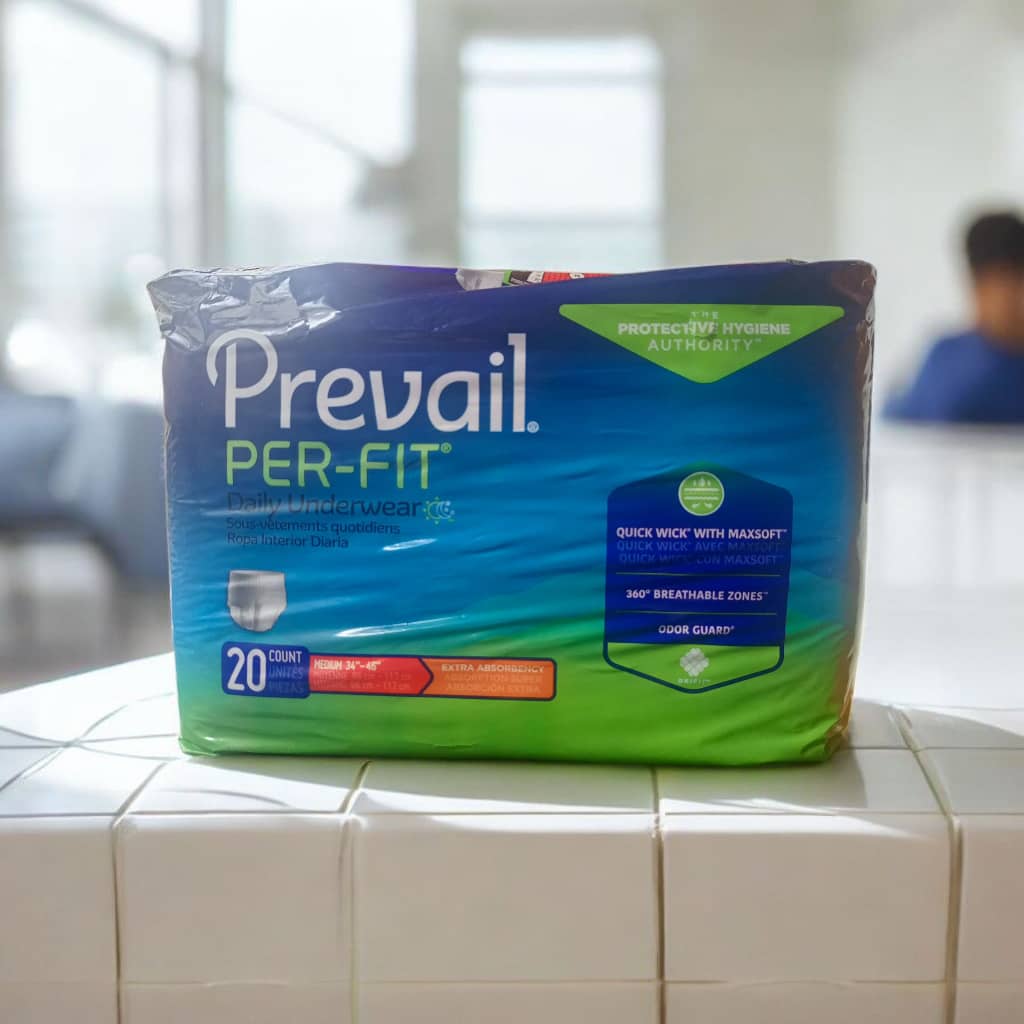 Prevail Per-Fit Daily Underwear, which is a type of disposable protective underwear for incontinence.