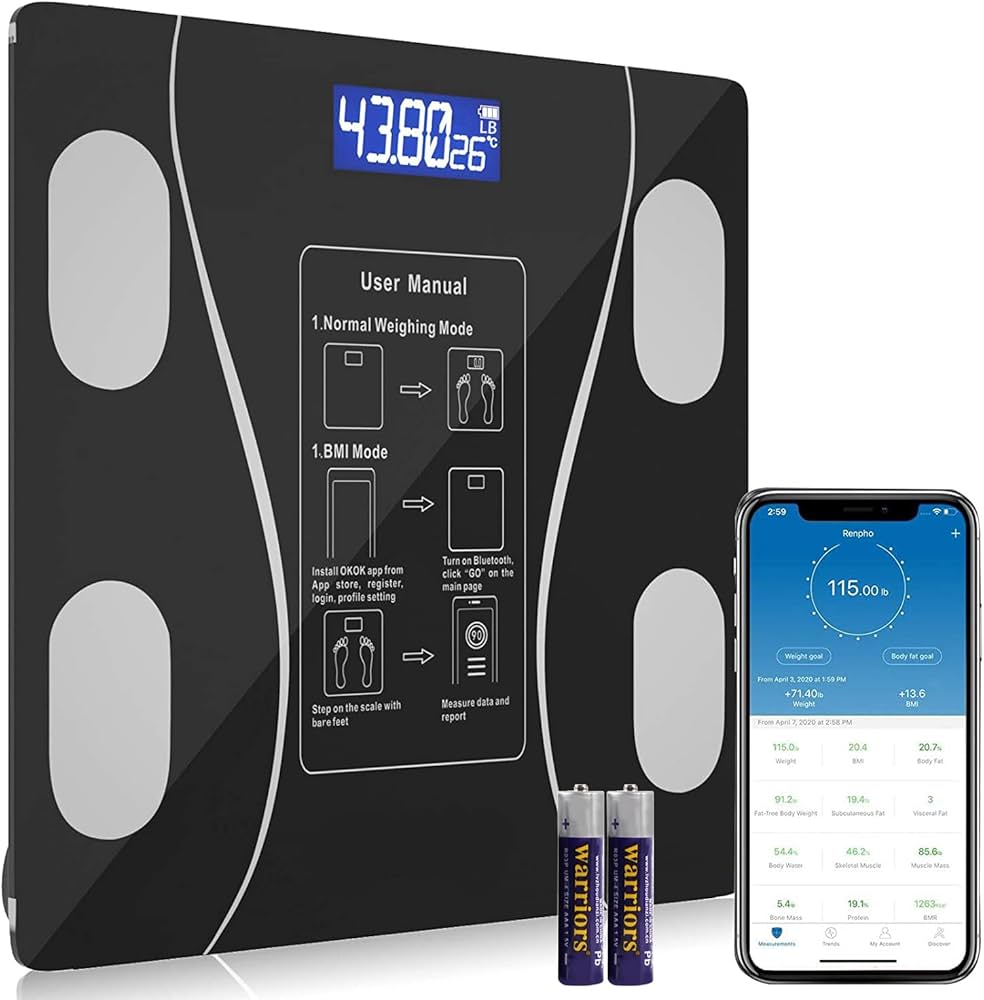 Monitors BMI, body fat, visceral fat, muscle mass, bone mass, body water, protein, BMR, and more